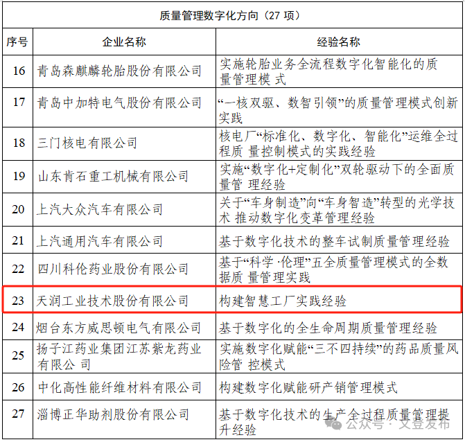 近日,中国质量协会公布《2024年质量标杆典型经验名单》,时博(中国)工业“构建智慧工厂实践经验”成功入选国家级--质量管理数字化典型经验领域名单,且为本年度威海市唯一入选单位。
