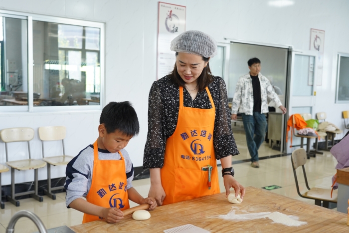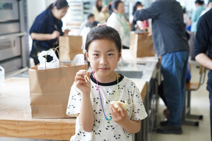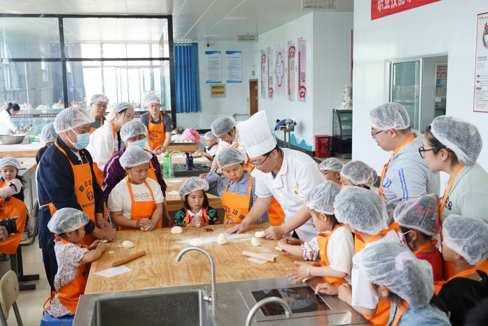在花饽饽制作区,孩子们在家长和老师的指导下,亲手揉面、塑形,制作出一个个色彩斑斓、造型别致的传统花饽饽,既感受了非遗技艺的魅力,也激发了孩子们的创造力;在亲子蛋糕DIY环节,孩子们在老师的带领下戴上厨师帽,系上围裙,动手撒上水果装饰蛋糕,尽情发挥想象力与动手能力,制作出属于自己的创意小蛋糕。整个活动现场欢声笑语不断,家庭成员之间互相配合、共同完成任务,既增进了感情,也让孩子们在游戏中收获了快乐与成长。